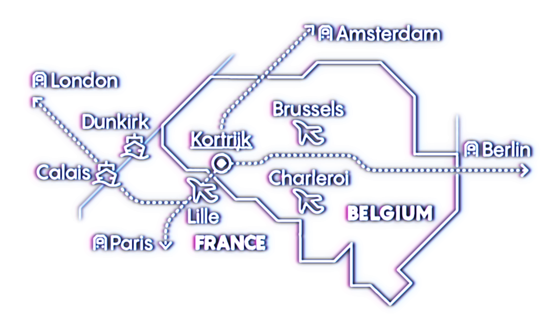 A valid alternative option for UK visitors coming by car as Calais and Dunkirk ferry terminals are less than two hours’ drive away from Kortrijk.